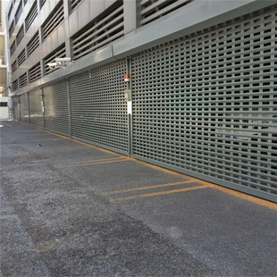 以多關節活動的門片串聯在一起,固定在導軌滑道內,以門上方捲軸為中心上下轉動,用專用電機帶動捲簾中心軸轉動,達到捲簾開關,當轉動到電機設定的上下限位時自動停止。